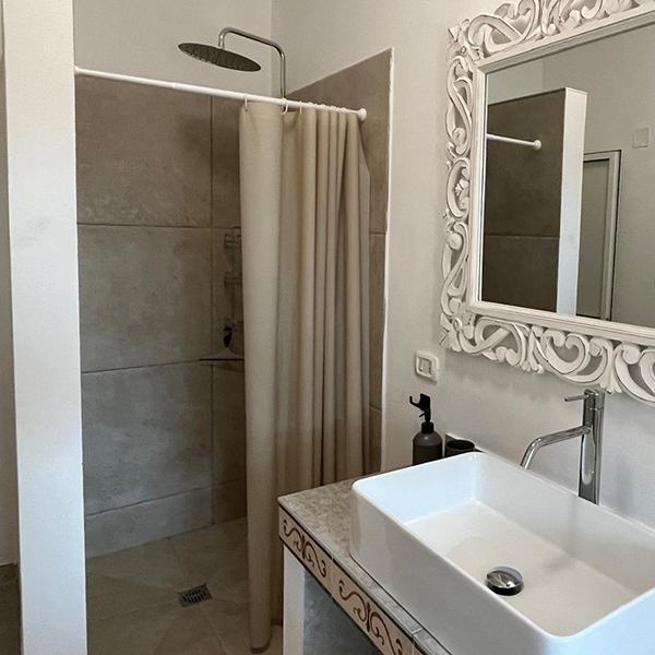 Bad: „Walk-in“ Dusche, Toilette, Waschbecken